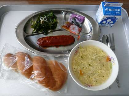 なお、上の写真は<検食用>で量を少なめにしてあります。子どもたちの給食はもっとボリュームがあります。