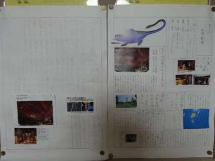 第1学年教室前掲示板に、子ども一人ひとりが学習旅行で学習した成果を新聞にして掲示してあり、内容がとても工夫してありユニークです。