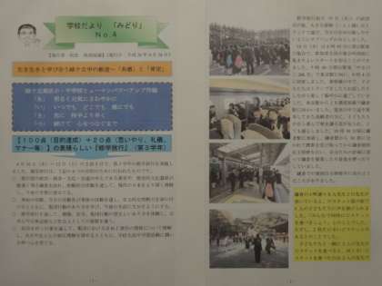 本日、学校だより「みどり」第4号を発行いたしました。