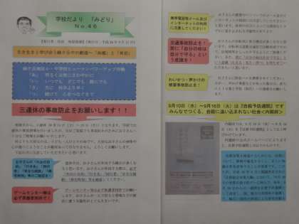 本日、学校だより「みどり」第46号をを発行いたしました。