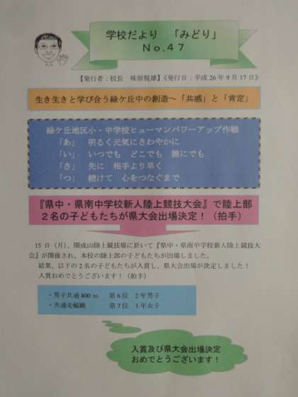 詳細につきましては、【お知らせ】の<学校だより>の第47号をご覧ください。