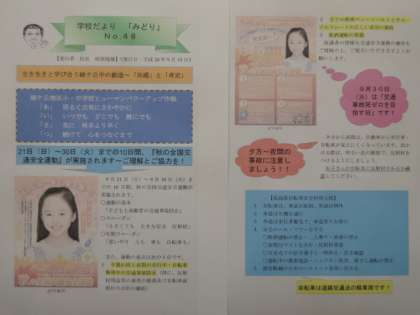 記事の内容は「21日(日)〜30日(火)までの10日間、『秋の全国交通安全運動』が実施されます〜ご理解とご協力を!」「3学年を対象に『高校説明会』が開かれる」です。