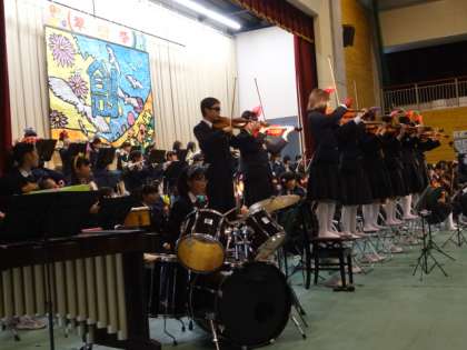 18日(土)に生徒会主催による文化祭『翆巒祭』が行われました。14:45〜、<発表4>があり、管弦楽部の素晴らし演奏披露(GUTS!、DISNEYメドレー、SINHG SING SINGなど)がありました。
