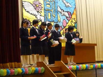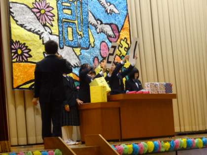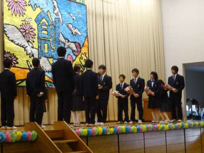 18日(土)に生徒会主催による文化祭『翆巒祭』が行われました。15:20〜、<閉祭行事>があり、翆巒祭を振り返ってのスライドショー、ラッキーナンバー抽選、生徒会役員引き継ぎ等がありました。