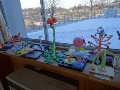 来校される機会がありましたら、ぜひ美術室で子どもたちの作品をご覧ください。