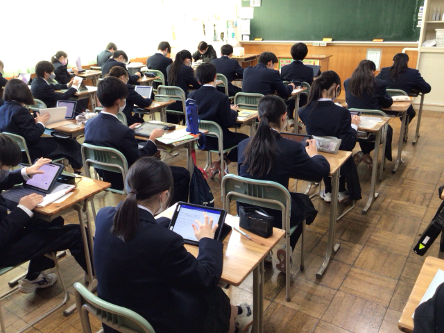 1年生の教室では、教科書の長文の内容を読み取る練習に取り組んでいました。それぞれ...