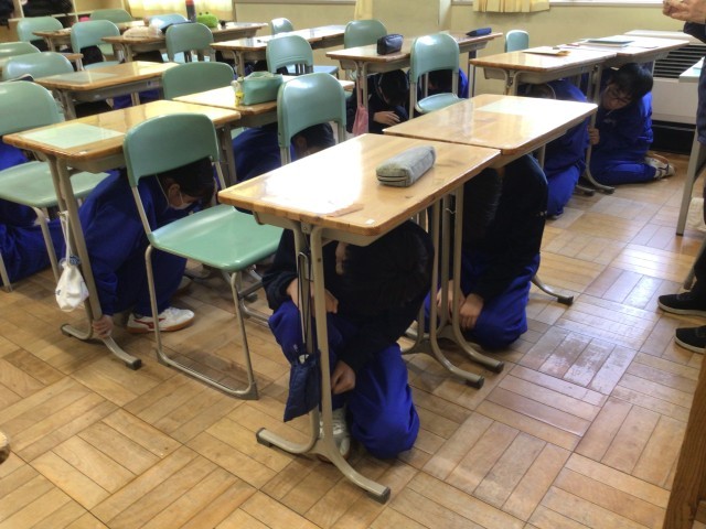 地震対応の避難訓練を実施しました。昨日、三陸沖で大きな地震があり、北海道・三陸後...