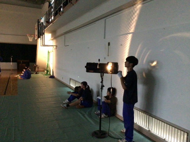 マイクでの進行や立ち位置、スポットライトの当て方などを確認しながら進めています。