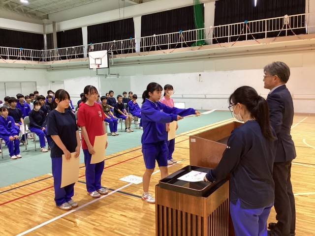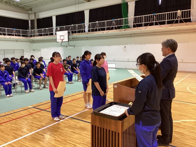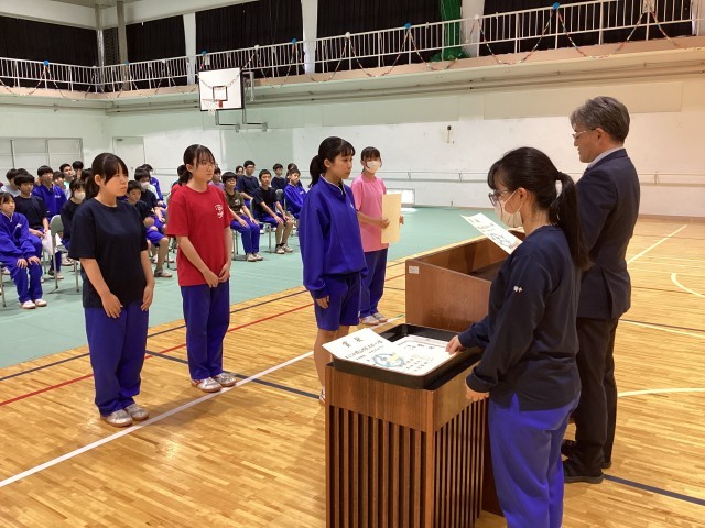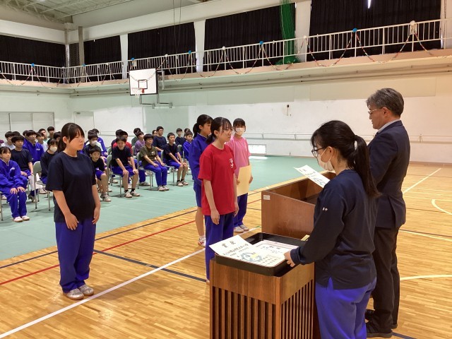 本日、新人大会と読書感想文コンクールの表彰伝達を行いました。