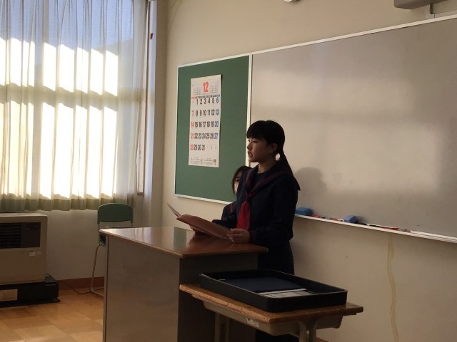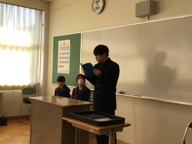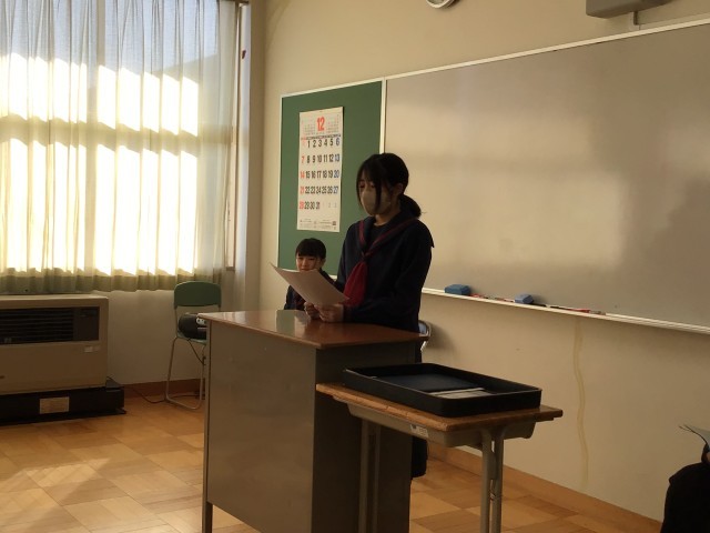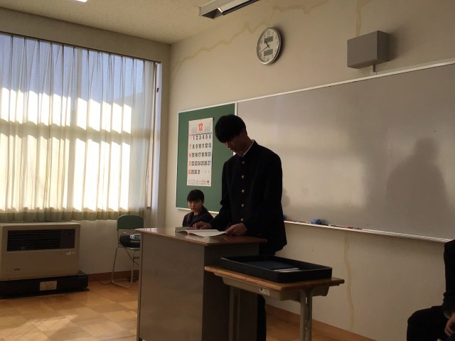 生徒会、各学年代表の発表では、2学期を振り返り、頑張れたことや改善したいことが具体的に述べられ、冬休みや3学期に向けた目標が発表されました。