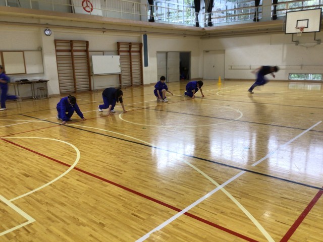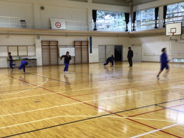 今日から県中陸上大会に出場する生徒達の朝の練習が始まりました。あいにく雨の日の初日となりましたが、選手のみなさんは、体育館で元気に練習を行いました。県中陸上大会は、