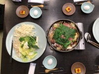 夕食は、すき焼きです。柔らかい赤身肉と玉ねぎ、白菜などご飯が進みます。汗をかきか...