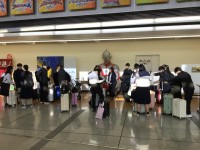 2泊3日の京都、奈良、大阪の修学旅行に出発です。出発式を終え、バスで福島空港に向...