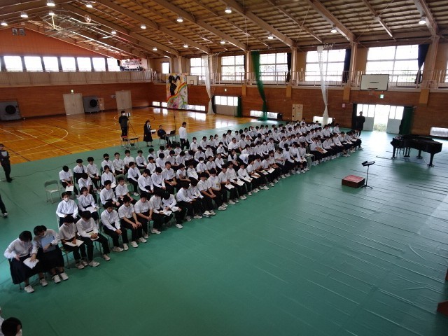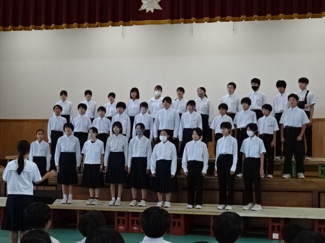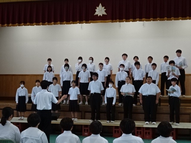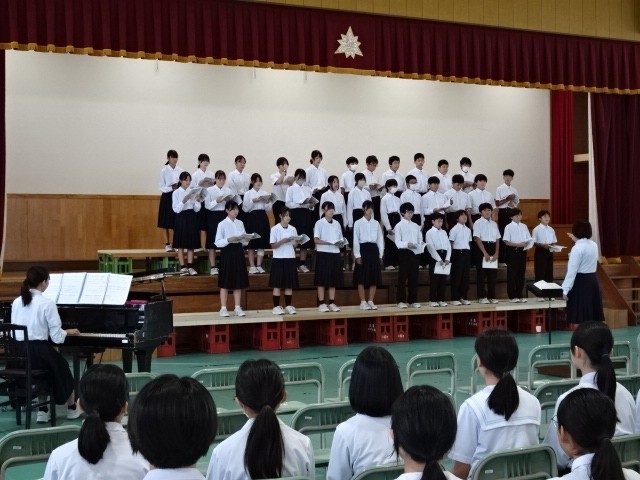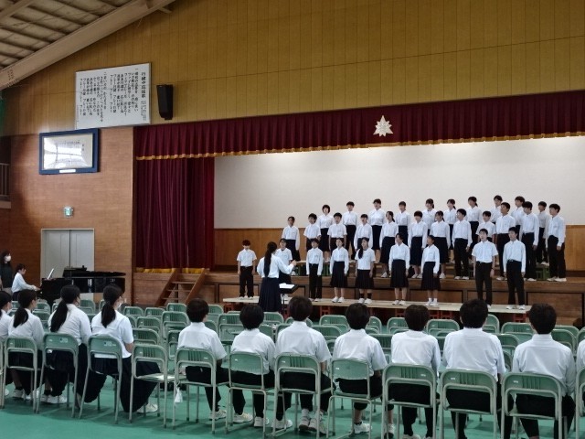 初めての合唱コンクールに向けて、少し緊張した様子でしたが、1年生らしい合唱が体育館に響きました。
