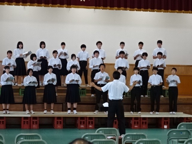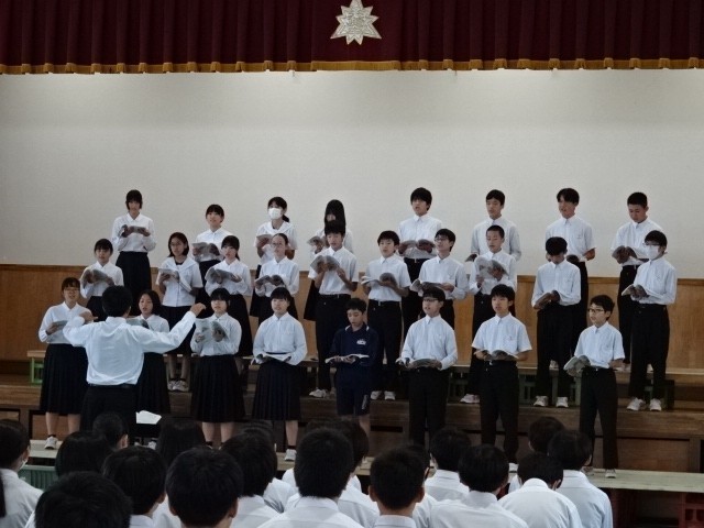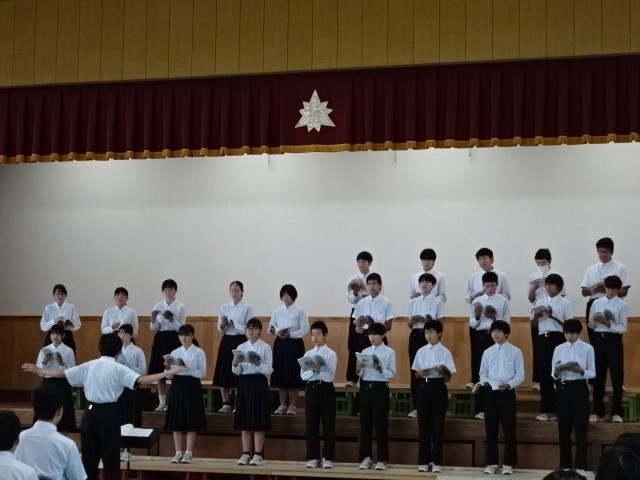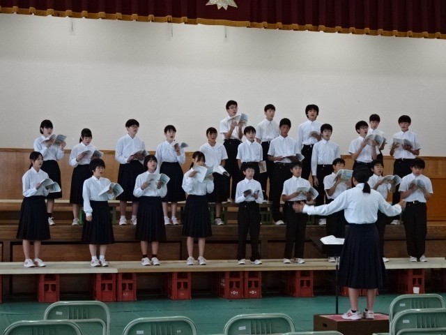 1年生から成長した中学生らしい歌声が体育館を包みました。