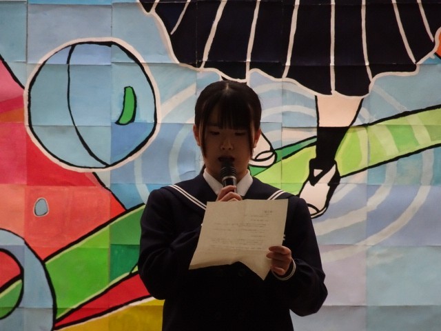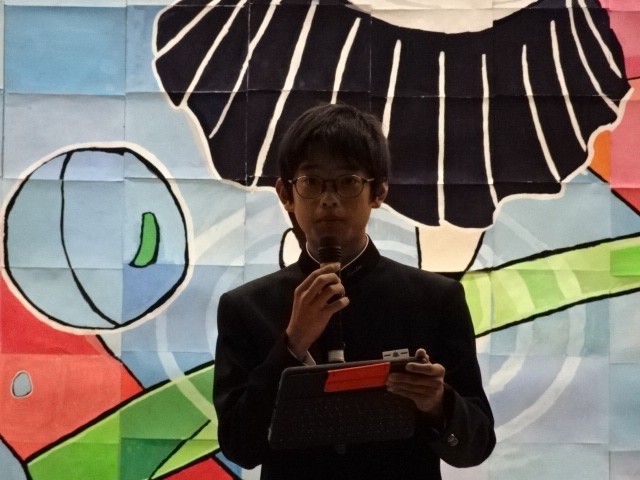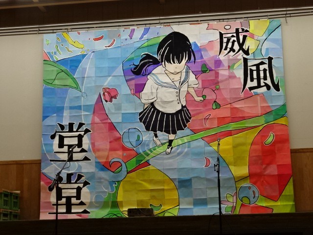 高みへ向かって堂々と歩いていく姿を、各クラスの合唱曲のモチーフと組み合わせて原画を制作しています。