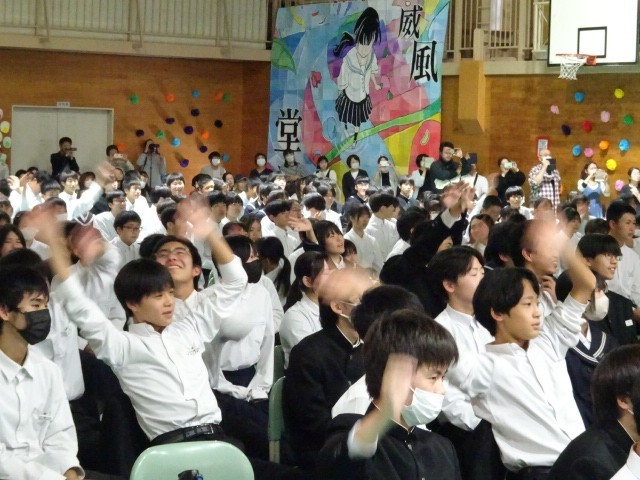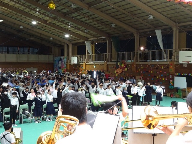 ディスニーメドレーや流行の曲など、どの曲も聞き馴染みのある曲ばかりで、全校生が一体となって盛り上がりました。