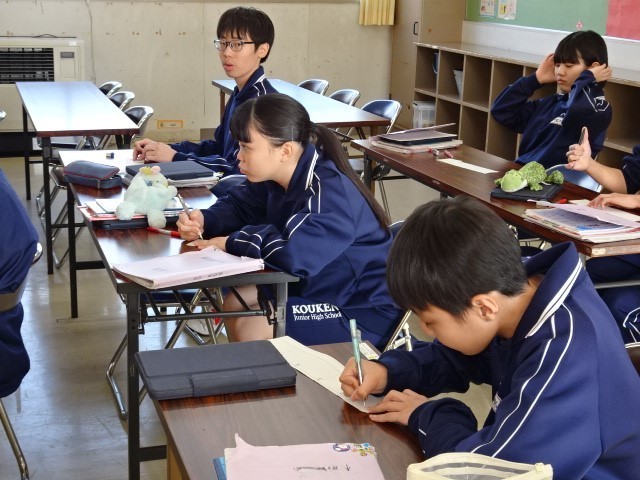 お互いに自分がつくった英文を音読しながら、周りの人たちと英会話を楽しんでいます。