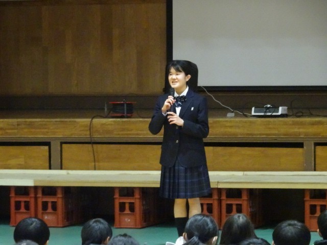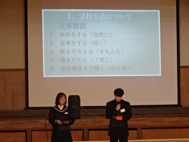 また生徒会本部からは、中学校の1日の生活について説明がありました。