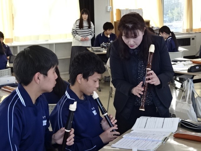 リコーダーアンサンブル「ラバーズコンチェルト」で美しいハーモニーをつくるための工夫を考えて演奏しています。