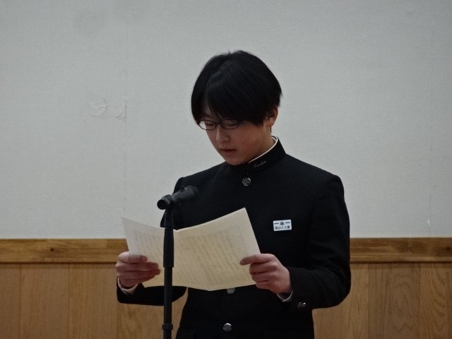 校長式辞では、高みへ挑戦する機会が多くあり、多くの生徒がチャレンジすることができた。来年に向けて、今年の反省をして新たな挑戦をしてほしい。とお話がありました。
