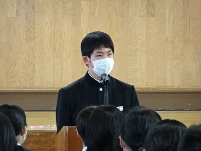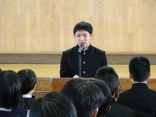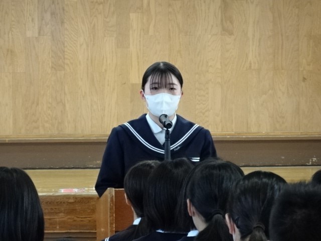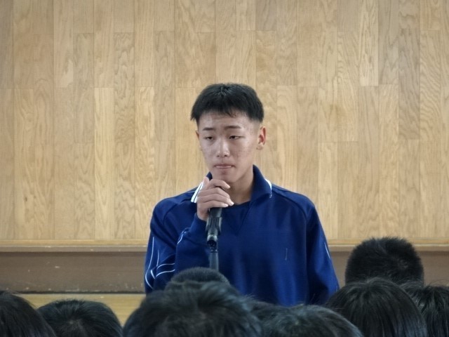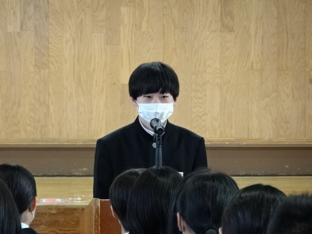 各クラスの修学旅行実行委員から3日間の行動目標や注意事項について話がありました。