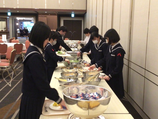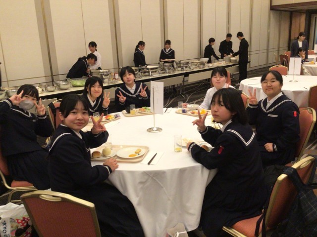 おはようございます。修学旅行3日目となりました。生徒たちが2日間の疲れも見せず、今日も元気に朝食会場に姿を見せてくれて、まずはひと安心です。朝食後は、クラスごとに東京都内の見学に出発します。クラス別研修のコースです。