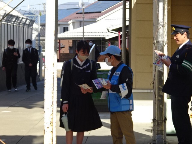 生徒会のみなさんにも協力いただき、ルールを守って責任ある運転ができるよう呼びかけをしました。