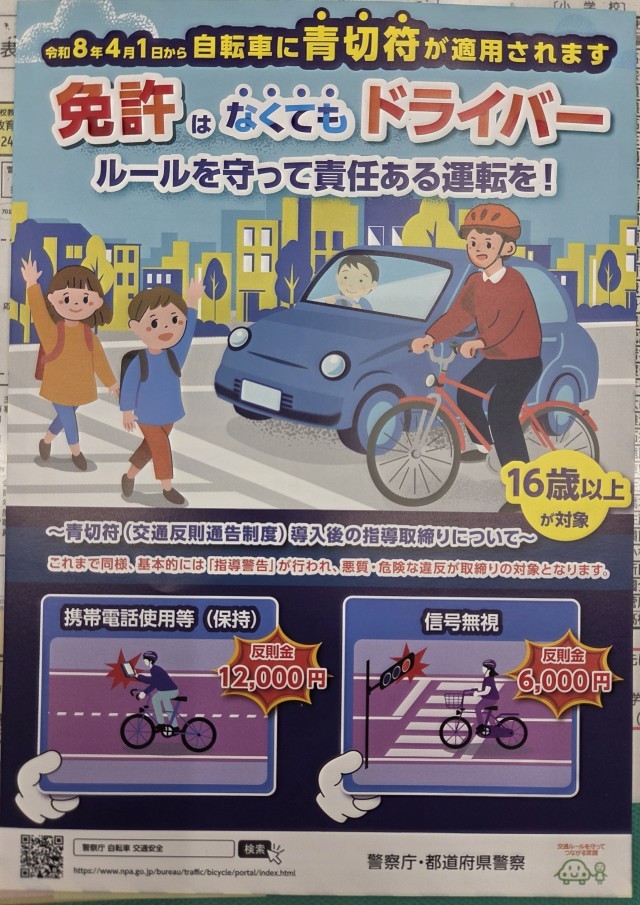 道路交通法が改正され、自転車にも青切符が適用されるようになりました。