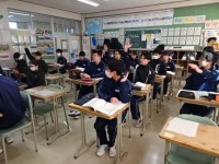 4月13日(金)に、新入生歓迎会が行われました。画像は「新入生の入場」「生徒会役員歓迎の言葉」「新入生と2・3年生が対面しての校歌披露」です。