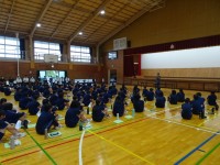 4月2日(火)の校庭の桜です。時折雪が吹き付けてきますが、蕾がだいぶ色づいてきました。南門の椿は見頃です。