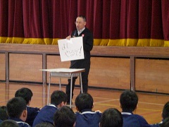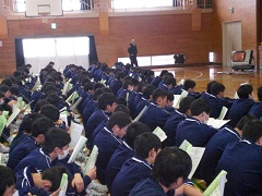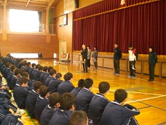 2年生は学年集会を行いました。学年の先生から自己紹介の後、2年生としての心構えや、生活面と学習面についてそれぞれ話がされました。