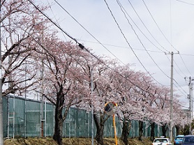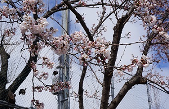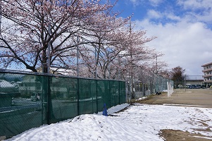 4月11日(木) 正午頃の写真です。青空と桜と雪がコントラストをなしています。