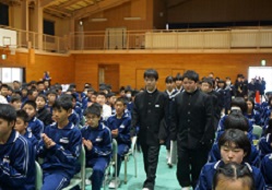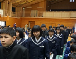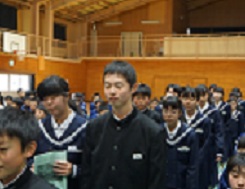 4月12日(金) 5校時と6校時は「新入生歓迎会」でした。画像は新入生入場の様子です。3年生が先導して入場しました。