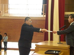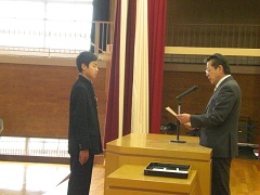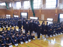 4月19日(金) 学級三役の任命式が行われました。学年ごとに学級役員を呼名した後、代表生徒が任命状を受け取りました。その後、校長先生から全校生に向けて、みんなで安心できる学級をつくっていくよう激励の言葉がありました。学級役員の生徒は、呼名に対する返事が立派で、学級の代表にふさわしい態度でした。