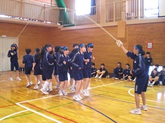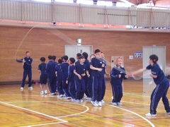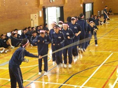 長縄競技の様子です。男子全員跳び、女子全員跳び、学級全員跳び、8の字跳びの4種目行いました。