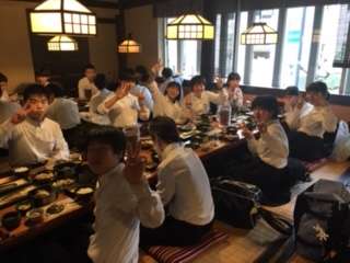 徒歩で食事会場に到着しました。現在食事を楽しんでいるようです。場所は「土風炉」と書いて「とふろ」と読む、和食がメインの食事店です。