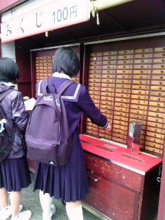 浅草寺といえばおみくじですが、一般的におみくじで「凶」を引くことはあまりないといわれています。しかし、この浅草寺は「凶」どころか「大凶」の含有率が結構高いお寺として有名です。果たして生徒達の結果は?