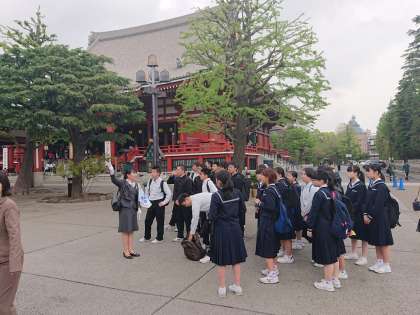 ガイドさんの話を聞く行健中2組の様子です。真剣に話を聞いていることがわかります。