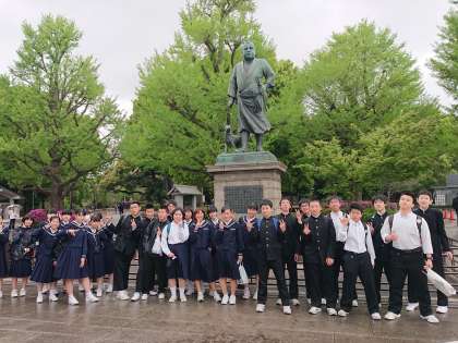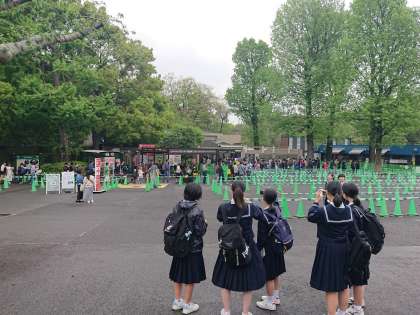 2組が上野恩賜公園・動物園に到着しました。パンダを見学する順番の列に驚いているようです。