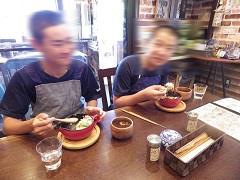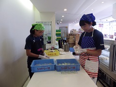 シャトレーゼ八山田店、癒しカフェふれあい での職場体験学習の様子です。