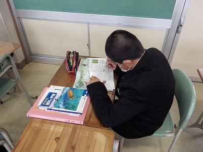 1年1組の理科の授業です。葉の構造を教科書に記載されている断面図を参考に理解を深めています。担当教師の指示で教科書の重要部分にアンダーラインを引いています。家庭で復習する際に、授業の振り返りの大事な目安になります。
