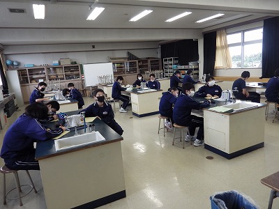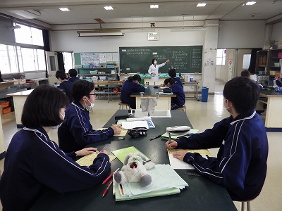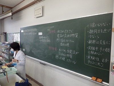 3年5組の理科の実験の授業です。事前に既習事項の確認をするとともに、本時の実験の手順を丁寧に説明しています。学習の目標がはっきりし、まとめるためのプリントも用意されています。