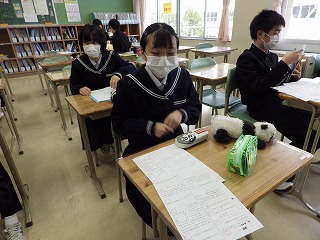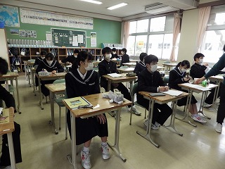朝の打合せの様子です。担任の話をしっかり聞いています。