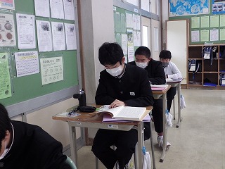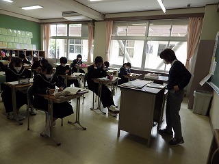 3校時の国語の授業です。教科書から登場人物の心情を読み取り、自分の言葉でまとめる授業です。