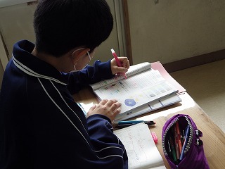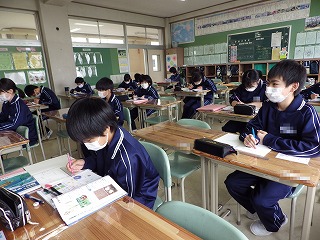 3校時の理科の授業です。種子の仕組みについて学習しています。重要語句の確認を一生懸命にしています。