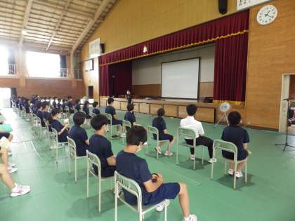 5校時目に体育館で学年集会を行いました。部活動に向けてや学習についての話を各担当がしました。みんな真剣に話を聞いていました。また、昼休みに係の生徒が一生懸命に準備に取り組みました。さすが3年生ですね。