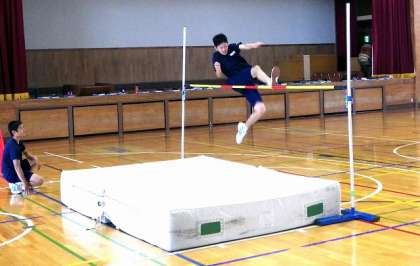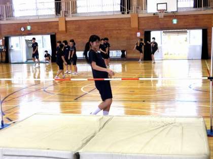 3年2組と4組の保健体育の授業です。走り高跳びを、いくつかのコースにわけてチャレンジしています。1番高いコースは男子だけでしたが、2番目には女子も数名参加して果敢に挑戦しています。男子は失敗を恐れずどんどん挑戦していますが、女子はややためらいが見られがちです。それでも何度でも挑戦する姿は見事です。