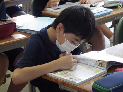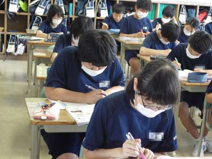 1年1組の社会の授業です。世界の三大宗教について、それぞれの特徴を把握する授業です。比較してみると、新たな発見があり、大変興味深いようです。