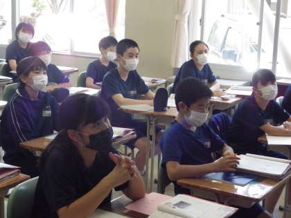 2年2組の英語の授業です。英単語の発音について学習しています。みんな的確に発音することができています。